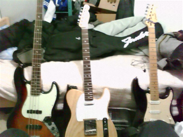× [PR]上記の広告は3ヶ月以上新規記事投稿のないブログに表示されています。新しい記事を書く事で広告が消えます。 3/8の詳細が決まりました! PR ども、おさだです。 おとといの土曜日の深夜、「明日ヒマだよね?」というメールを機に行われることになりました、リズム隊飲み@ 俺んち。遊びと称して行われた、ヒロシの作ったメロディにコードをくっつける会は思いのほか順調にことが運 んだようです。ヒロシの作るメロディはとても素直なのに、彼がそれに付けたコードがかなりプログレッシブ(オ ブラートに包んでます)だったのでそれを訂正しつつコードを付けてみました。結構ベタな進行になりました が、やっぱりそういうのもやってみたいし実際に大切なところでもあるので、割とまじめに相談して考えてみまし た。 二人でも十分に文殊の知恵ですね。 すごくスムーズに曲の大事なところができていったと思います。彼の突拍子もないアイデアに引っ張られる部 分もありましたし。 右の写真は相談の時に活躍した楽器たち。 左から、4弦がビビるため必ずオーバードライブ気味になる仕様のベース、バ イト代+僕の胃袋に入るはずだったもので買った木目のテレキャス、中二病発 症時に買った初心者セットのストラト。 僕がワイルドに脱いだジーンズもこっそり見切れていたりして。 田中さんの療養期間の間は曲作り+メンバーそれぞれの上達を待つ期間とい うことで、今後も自分の曲作りと平行してヒロシの曲作りに協力していきたいと思います。とはいえコードを付け るのが僕だけだとワンパターンになりそうなので、山口さんにも協力してもらうようになって、また一味違うもの ができたらいいな、と思っております。 ちなみに右、俺のギター(テレキャスターの照子)と戯れるヒロシ。僕は照子さんを奪われて若干焼きもちやい ているのでした。 まあ実はそんな相談をしていたのはほんのつかの間で、大半はスマブラでヨッ シー狩りをしたり、某動画サイトでおもろい動画を見たり、ウィスキーを飲んだり というしょーもない集まりでしたが。 今週の金曜日は朝イチから録音の予定。朝起きる自信ないから寝ないぞ! では~ ノシ